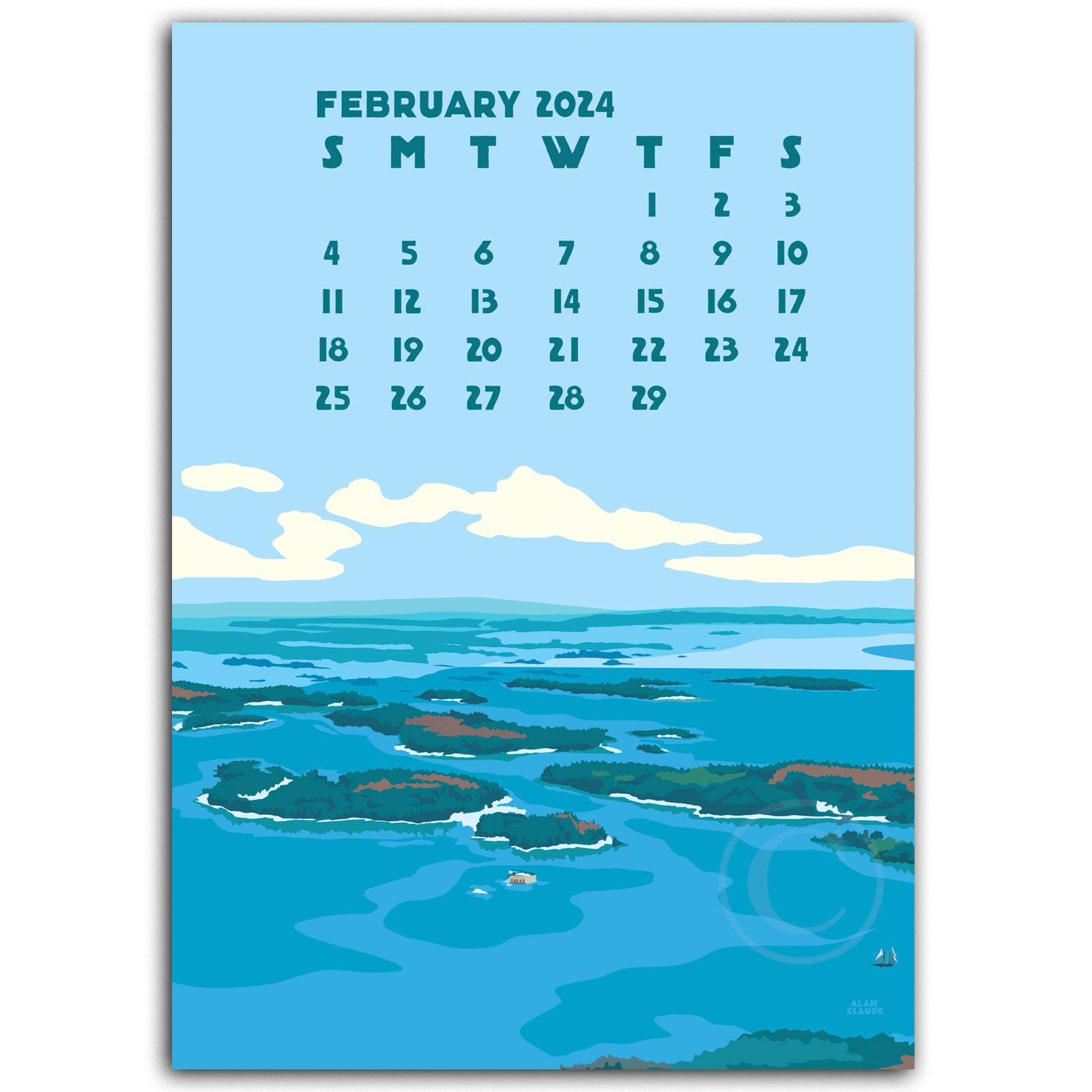 2024 Art Desk Calendar 5×7 poster style of Maine and New England