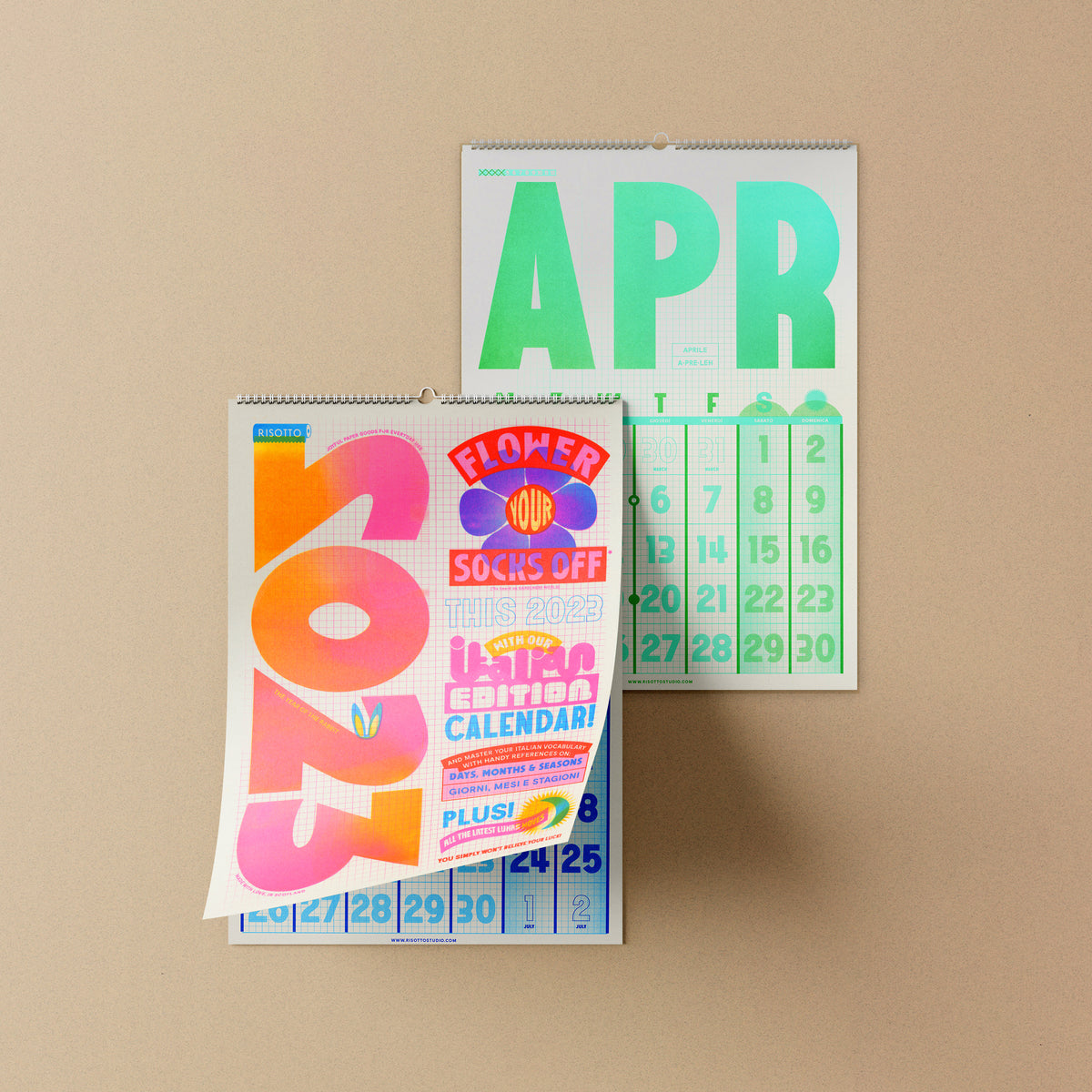2023 Riso Calendar A3 Deal x2 | Handprinted in Scotland by RISOTTO